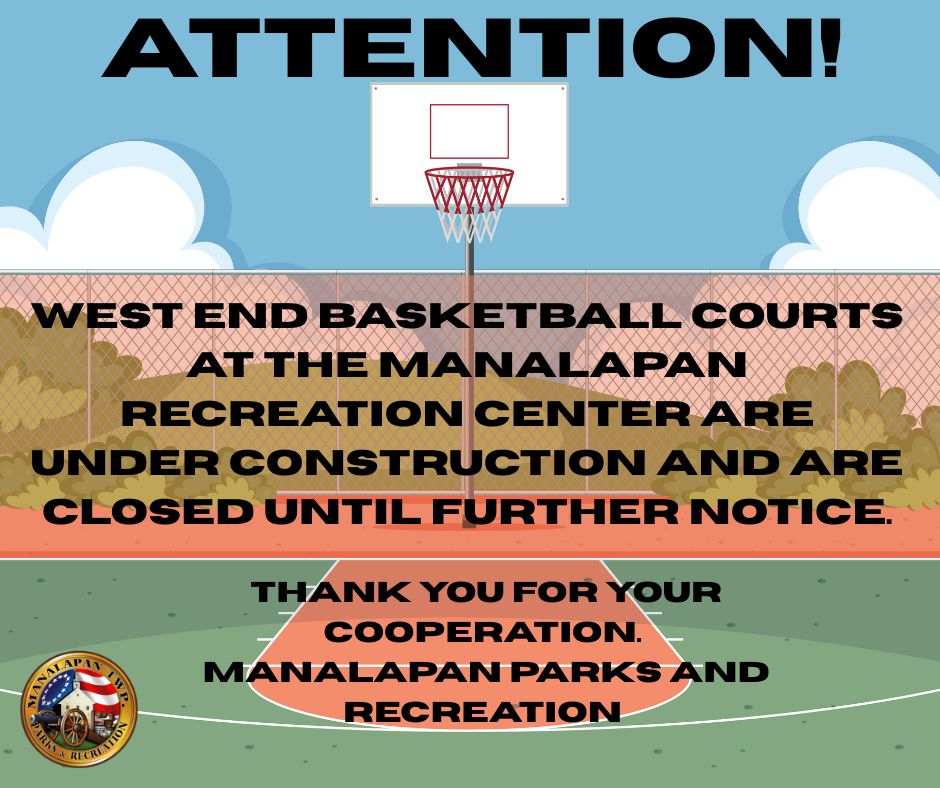 HOME GOVERNMENT Agendas Business Code Book of Township Ordinances Form of Gov/Org. History Maps Mayor & Township Committee Affordable Housing Information Public Notices Storm Water Management DEPARTMENTS Administration Community Alliance Construction Finance Department Health Department Mgt Information Services Municipal Clerk Municipal Court Public Works Parks & Recreation Purchasing Planning & Zoning Senior Center Shade Tree Tax Collector Tax Assessor Zoning/Enforcement Police Department COMMITTEES Board of Health Cable Television Advisory Committee Diversity Committee Economic Development Council (EDC) Emer. Mgmt. Coun. & Annex Sub-Com. Environmental Commission Historical Committee Manalapan Arts Council (MAC) Manalapan MRC-CERT Mayor’s Council on Special Needs Mun. Ag. Advisory Comm. Recreation Advisory Board Shade Tree Committee Teen Leadership Committee Safety Advisory Committee Utilities Committee Veterans Affairs Advisory Committee NEWS & EVENTS Job Openings Monthly Calendar RESIDENTS Assistance Programs Applications Dog Park Adopt A Spot/Road Program Recycling & Garbage No Knock List Manalapan Township Television Community Center Coronavirus Information Water Sale Information CONTACT US Contact Information Directions Emergency Numbers SHOP Parks & Recreation Alerts Coaches / Volunteers Organized Sports Outside Organizations Parks & Recreation Active Park Properties Program/Registration Information Special Events Summer Camp Therapeutic Recreation Thompson Grove Park Disc Golf Course Events Alerts Spring Park Hours: Spring park hours will go into effect Monday, March 9th.